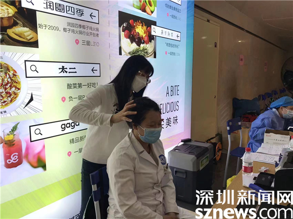 5月1日下午,老圍社區(qū)黨委書記許少瓊來到KKMALL商場負一樓的疫苗接種點,看望現(xiàn)場的工作人員和醫(yī)務(wù)人員,檢查當天的疫苗接種情況,并與工作人員一起動員來往行人進行加強針的接種。當她聽說負責登記的醫(yī)生因為淋雨著涼而頭疼得厲害,卻還在默默堅持時,許少瓊立刻走到醫(yī)生的身后,為醫(yī)生按摩頭部。被按摩的醫(yī)生一再說,“很舒服,輕松了很多。”其實,這一天,連續(xù)工作4個月無休的許少瓊,身體也不是很好,但她用堅強的毅力壓抑了身體的不適,以一貫的積極樂觀影響帶動著身邊的同事。