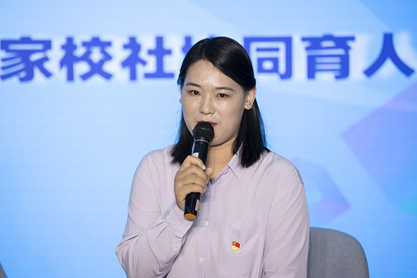 社區(qū)代表大望社區(qū)黨委書記高桂秀向大家分享了她致力于“家校社協(xié)同育人”的初心以及大望社區(qū)的相關(guān)探索,大望社區(qū)孩子及其家庭人數(shù)占社區(qū)的70%以上,且大部分無異于“留守未成年人”和困境未成年人。大望社區(qū)抓住轄區(qū)內(nèi)家庭教育的痛點(diǎn)與堵點(diǎn),通過貫徹社區(qū)“大黨委”理念、建立定期聯(lián)系的聯(lián)席工作例會(huì)制度、充分利用轄區(qū)優(yōu)勢資源,成立家長黨員志愿者服務(wù)隊(duì)等多措并舉,多方聯(lián)動(dòng),形成家庭主體、學(xué)校主導(dǎo)、社區(qū)參與的育人網(wǎng)絡(luò)。以社區(qū)黨委為突破點(diǎn),融合一體,聚合成銜接有效、資源共享、活動(dòng)共商、項(xiàng)目共育、互促共榮的動(dòng)態(tài)雙向互動(dòng)協(xié)同育人共同體,構(gòu)建大望特色的‘家校社’協(xié)同育人的新模式,交出一份人民滿意的答卷。