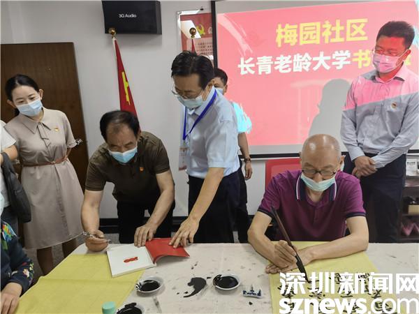 現(xiàn)場(chǎng),還邀請(qǐng)了梅園社區(qū)長(zhǎng)青老齡大學(xué)書法班鄒洪濤老師向大家講解,鄒洪濤既是書法班的老師,也是社區(qū)第十黨支部的支部書記,更是一名基建工程老兵。當(dāng)鄒洪濤介紹家喻戶曉的照片《升》的主人公正是他本人,更是讓王云虎對(duì)他豎起了大拇指。他激動(dòng)地表示,鄒洪濤的紅嶺大廈建筑工地上被定格的這張“頂天立地”的照片,是基建工程兵傾力投身改革開放的縮影,展示了深圳經(jīng)濟(jì)特區(qū)初創(chuàng)時(shí)蒸蒸日上的發(fā)展勢(shì)頭,是深圳建設(shè)初期時(shí)代張力的見證。
