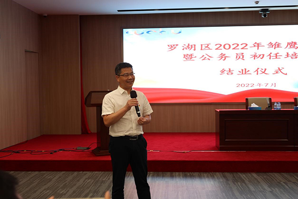 結(jié)業(yè)儀式上,區(qū)委組織部常務(wù)副部長高延勇對此次羅湖區(qū)“雛鷹訓(xùn)練營”取得的成效給予了充分肯定,對各位學(xué)員通過一個月培訓(xùn)取得的進步和成長表示了祝賀,并從5個方面對羅湖“雛鷹”提出了殷殷期望:一是提高政治意識,把自身工作融入到區(qū)委區(qū)政府中心工作中去,強化責(zé)任心,增強年輕干部使命感;二是爭做“先鋒者”,積極踐行羅湖“先鋒精神、奮斗文化”,敢于爭先,勇于擔(dān)當;三是增強創(chuàng)新創(chuàng)造意識,發(fā)揮年輕人的優(yōu)勢,多做“無中生有”的事情,多做示范引領(lǐng)的工作;四是提升戰(zhàn)略思維,胸懷“國之大者”,善于從大局出發(fā)思考問題、謀劃工作;五是保持廉潔自律,從入職一開始就緊繃廉潔從政這根弦,努力成為心中有“秤”的年輕干部。