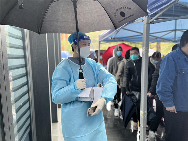 自深圳“0215”疫情突發(fā)以來,羅湖東門街道城東社區(qū)負責的湖貝社區(qū)公園臨時核酸點再次啟動。核酸點重啟的那天,雨嘩啦啦的下,負責人事安排、后勤保障的盧映均在工作群看到入口處的同事僅穿著雨衣服務(wù)居民的照片,舍不得讓站崗的同事長時間淋雨,恨不得自己去扛帳篷,奈何6個月身孕,只能安排現(xiàn)場的同事挪動帳篷,那帳篷沉得要四位男同志才扛得動。