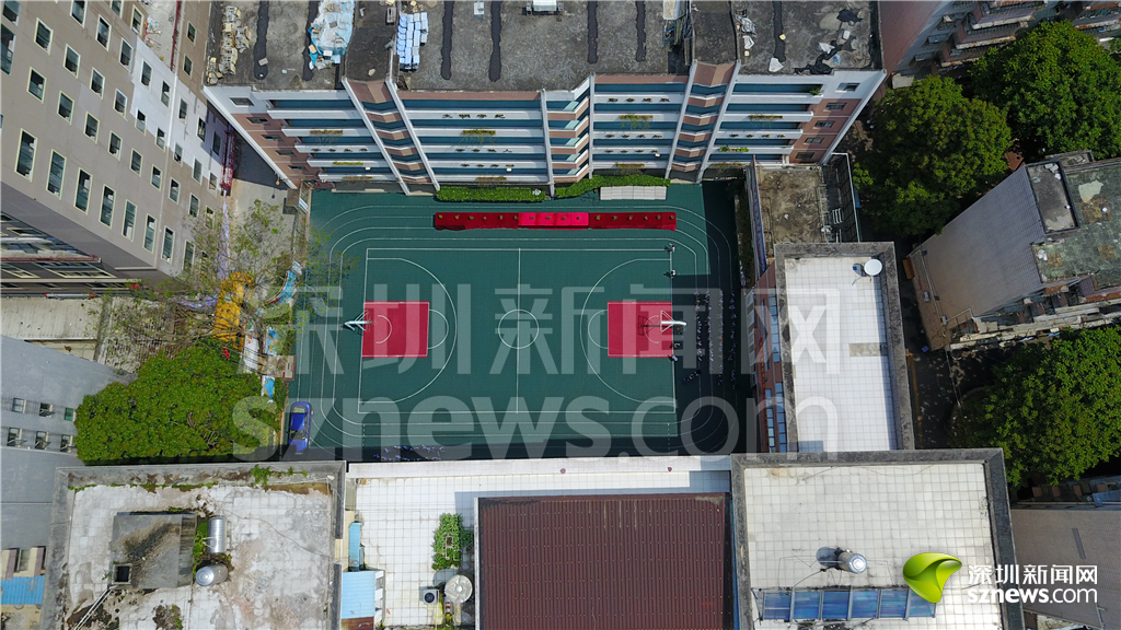 白石洲城中村內(nèi)的南山星河學(xué)校籃球場