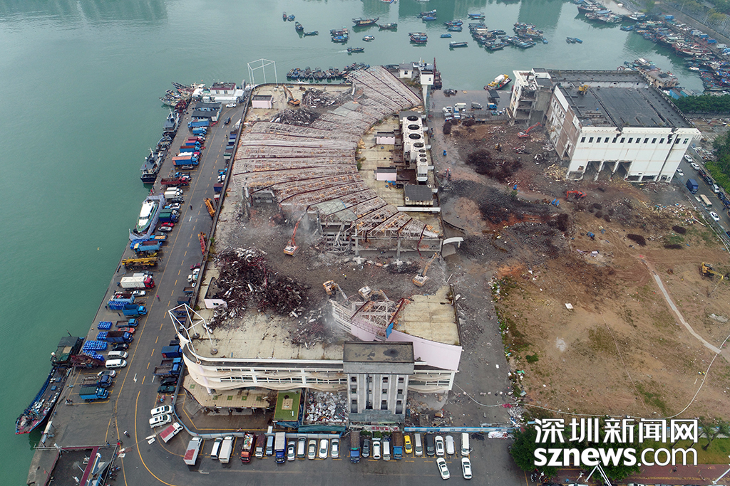 圖為4月16日漁人碼頭拆除現(xiàn)場(chǎng),對(duì)周邊漁船停泊和魚(yú)鋪經(jīng)營(yíng)并未造成影響
