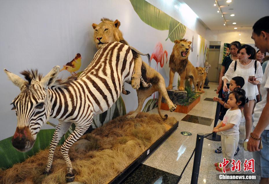 5月27日,各類飛禽走獸活靈活現(xiàn)地出現(xiàn)在民眾的眼前。正在福建博物院展出的第四屆中國(guó)動(dòng)物標(biāo)本大賽的257件惟妙惟肖的標(biāo)本作品集中對(duì)外開(kāi)放,讓民眾如進(jìn)入“動(dòng)物世界”。本次大賽匯集了全國(guó)標(biāo)本制作企業(yè)、博物館、大專院校、研究所等60多家單位參加,標(biāo)本涵蓋哺乳類、鳥類、爬行類、兩棲類、魚類等動(dòng)物類群的皮張和骨骼標(biāo)本。主辦方希望通過(guò)標(biāo)本大賽,向公眾展現(xiàn)動(dòng)物世界的美麗,宣傳生物多樣性和生態(tài)文明,借鑒吸收國(guó)際標(biāo)本制作先進(jìn)經(jīng)驗(yàn),提高中國(guó)野生動(dòng)植物標(biāo)本制作的整體水平。中新社記者 張斌 攝