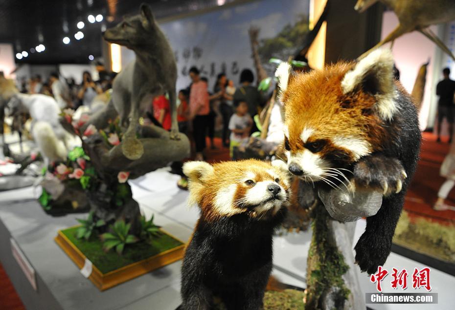 5月27日,各類飛禽走獸活靈活現(xiàn)地出現(xiàn)在民眾的眼前。正在福建博物院展出的第四屆中國(guó)動(dòng)物標(biāo)本大賽的257件惟妙惟肖的標(biāo)本作品集中對(duì)外開(kāi)放,讓民眾如進(jìn)入“動(dòng)物世界”。本次大賽匯集了全國(guó)標(biāo)本制作企業(yè)、博物館、大專院校、研究所等60多家單位參加,標(biāo)本涵蓋哺乳類、鳥類、爬行類、兩棲類、魚類等動(dòng)物類群的皮張和骨骼標(biāo)本。主辦方希望通過(guò)標(biāo)本大賽,向公眾展現(xiàn)動(dòng)物世界的美麗,宣傳生物多樣性和生態(tài)文明,借鑒吸收國(guó)際標(biāo)本制作先進(jìn)經(jīng)驗(yàn),提高中國(guó)野生動(dòng)植物標(biāo)本制作的整體水平。圖為大賽參賽作品小熊貓。中新社記者 張斌 攝