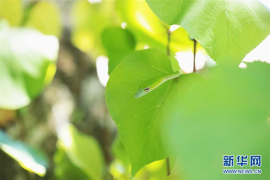 這是7月19日在馬來西亞沙撈越州峇哥國家公園拍攝的綠瘦蛇。設立于1957年的峇哥國家公園坐落于馬來西亞沙撈越州,擁有豐富的野生動植物物種。新華社記者 朱煒 攝