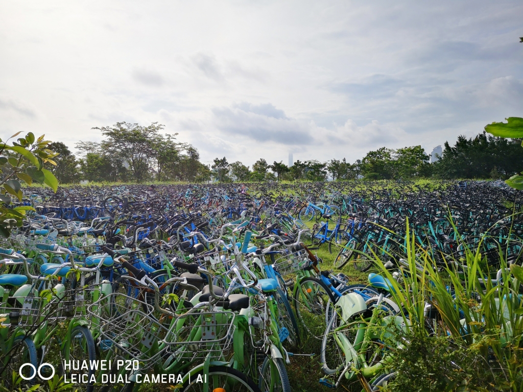大量的共享單車存放在此,多為小藍單車和酷騎單車(網(wǎng)友“東の風”拍攝)