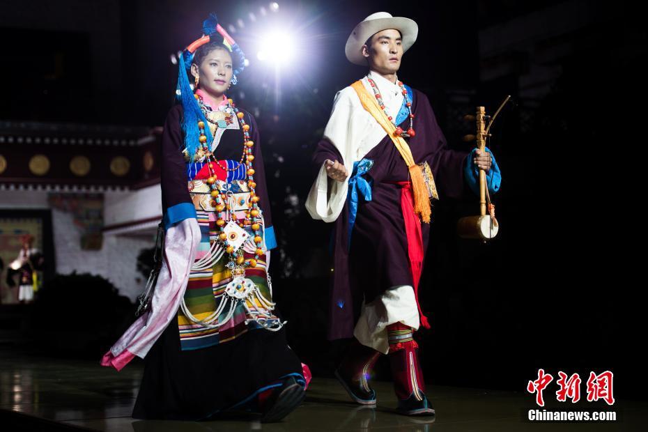 8月12日晚,由西藏職業(yè)技術(shù)學院與北京服裝學院共同打造的“凈美雪頓·美好生活”西藏民族服裝與服飾展演活動在拉薩舉行。現(xiàn)場通過傳統(tǒng)篇、現(xiàn)代篇與未來篇三個篇章,展演了藏族傳統(tǒng)服裝26套,設(shè)計創(chuàng)新服裝58套,共計84套服裝。圖為模特展示藏族傳統(tǒng)服飾。中新社記者何蓬磊 攝