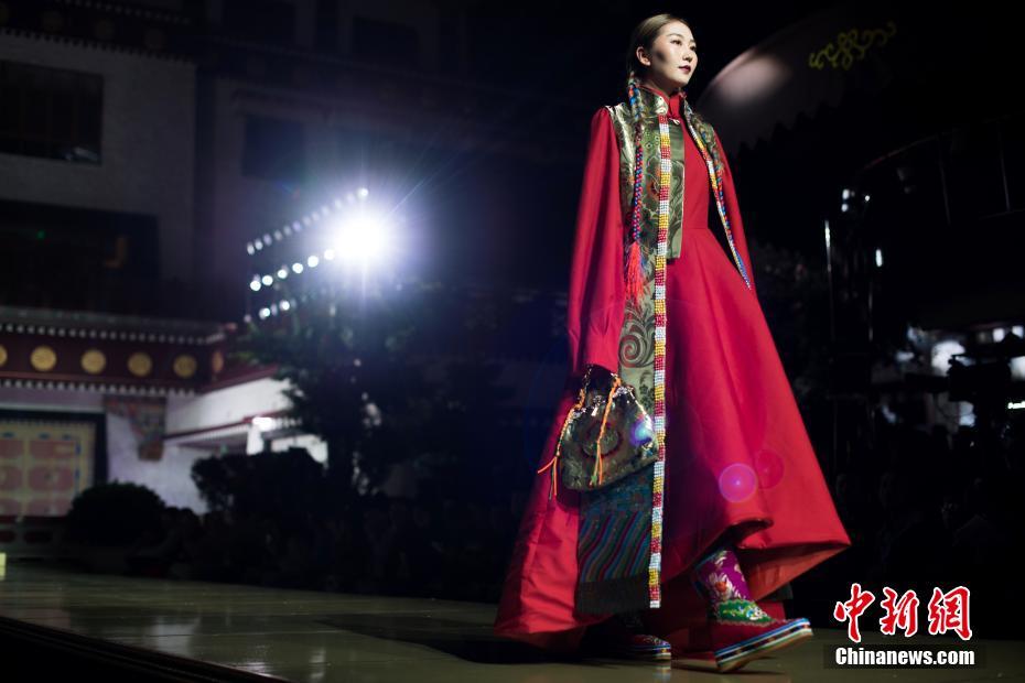 8月12日晚,由西藏職業(yè)技術(shù)學(xué)院與北京服裝學(xué)院共同打造的“凈美雪頓·美好生活”西藏民族服裝與服飾展演活動(dòng)在拉薩舉行?,F(xiàn)場(chǎng)通過傳統(tǒng)篇、現(xiàn)代篇與未來篇三個(gè)篇章,展演了藏族傳統(tǒng)服裝26套,設(shè)計(jì)創(chuàng)新服裝58套,共計(jì)84套服裝。圖為模特展示現(xiàn)代設(shè)計(jì)的創(chuàng)新藏族服飾。中新社記者何蓬磊 攝