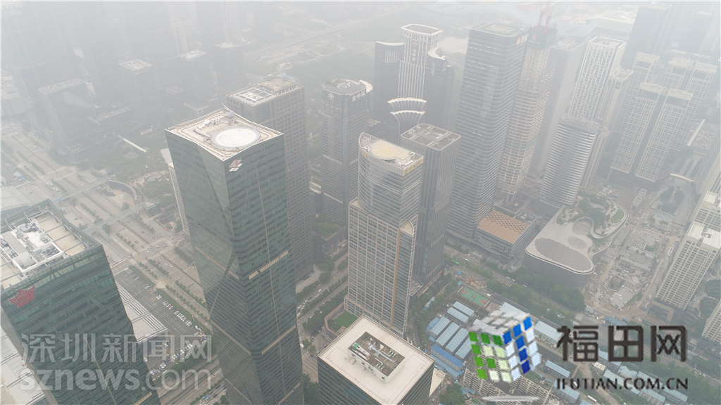 整個福田中心區(qū)都籠罩在灰霾之中。