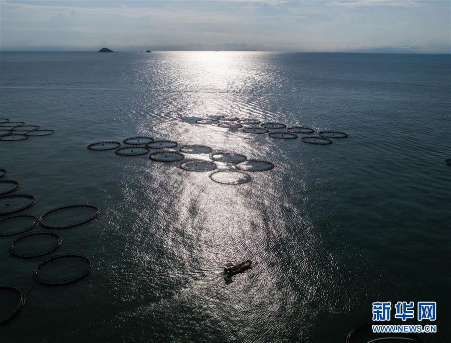 8月18日,漁船行駛在南麂島馬祖岙海域內(nèi)的“海上牧場”大黃魚養(yǎng)殖區(qū)(無人機(jī)拍攝)。進(jìn)入8月,浙江省溫州市平陽縣南麂鎮(zhèn)海域上大片的大黃魚、貽貝等特色海產(chǎn)品養(yǎng)殖區(qū)域迎來豐收季節(jié),養(yǎng)殖戶們駕駛漁船在養(yǎng)殖區(qū)海域進(jìn)行打撈收獲,在碧海藍(lán)天下構(gòu)成了一幅“海上牧場”的美麗豐收景象。近年來,南麂鎮(zhèn)政府引導(dǎo)漁民養(yǎng)殖戶充分發(fā)揮“靠海吃?!钡馁Y源優(yōu)勢,大力發(fā)展海洋養(yǎng)殖經(jīng)濟(jì)和海島旅游經(jīng)濟(jì),實現(xiàn)了南麂由“生態(tài)美”向“產(chǎn)業(yè)美”,“產(chǎn)業(yè)美”向“經(jīng)濟(jì)美”的轉(zhuǎn)變。同時該鎮(zhèn)堅持以大黃魚、貽貝等為特色產(chǎn)業(yè)支撐,精準(zhǔn)發(fā)展高效海洋養(yǎng)殖業(yè),重點培養(yǎng)一批新型職業(yè)漁民,依靠專業(yè)技術(shù)支持,實現(xiàn)深海仿生養(yǎng)殖,讓好生態(tài)造就好品質(zhì),重點打造南麂養(yǎng)殖品牌,組建營銷網(wǎng)絡(luò),拓展特色海產(chǎn)品市場。新華社記者 徐昱攝