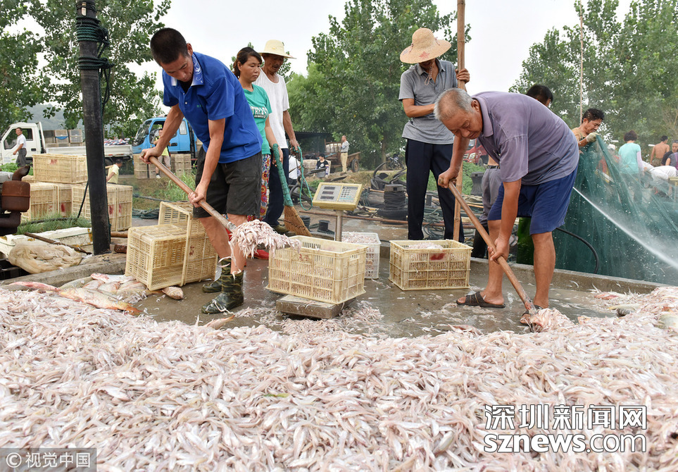 ?2018年8月12日,江蘇淮安洪澤湖全面開捕第四天,漁民進入銀魚和毛刀魚捕撈高峰期。
