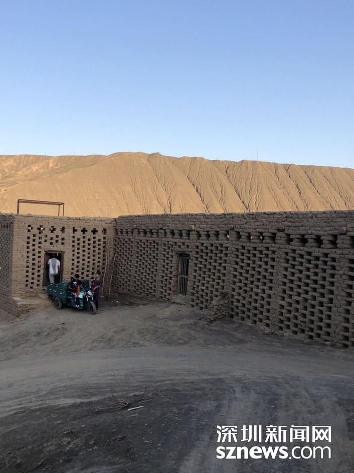 ??? ?在葡萄溝,隨處都可見到土磚砌成的鏤空方格子土屋,構(gòu)成了當(dāng)?shù)匾坏廓?dú)特的風(fēng)景,原來這是專門用來晾葡萄干的場地。 趙春麗攝