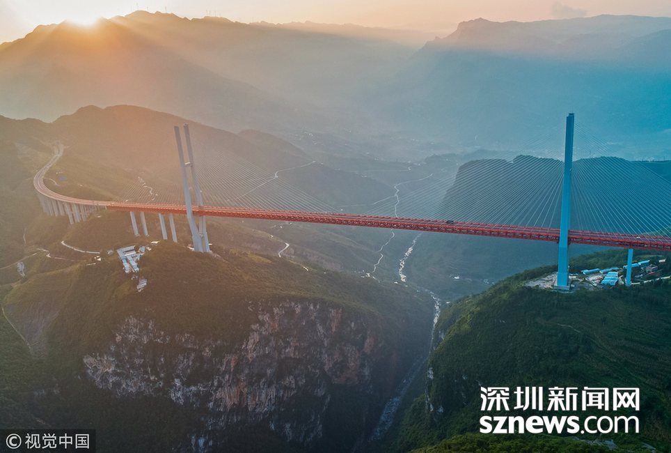 ??? 深圳新聞網(wǎng)訊? 畢都高速公路北盤江大橋是杭瑞高速公路畢都段的控制性工程,位于貴州省和云南省交界處,由貴州省和云南省共建。該橋橋面至江面高差達(dá) 565 米,成為目前世界第一高橋。主橋?yàn)殇撹炝盒崩瓨?,主?720 米,目前位居同類型橋梁2016 年12 月 29 日正式通車。