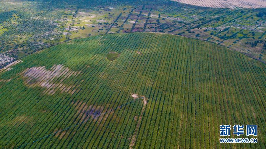 工人在內蒙古鄂爾多斯市杭錦旗阿木古龍產業(yè)園區(qū)為蔬菜除草(8月1日攝)。該地示范發(fā)展沙漠節(jié)水現(xiàn)代農業(yè),增加了農牧民收入。 巍巍陰山南麓,鄂爾多斯高原之北,橫臥著一條長約400公里、寬5-65公里的黃色“長龍”。它似弓弦,將滔滔黃河拉出一個大大的“幾”字彎。 這是中國第七大、也是距北京最近的沙漠——庫布其沙漠,曾經寸草不生,風沙肆虐,被稱為“死亡之海”。 幾十年來,庫布其人一代接著一代干,書寫了一部荒漠化治理的英雄史詩。 新華社記者 劉磊 攝