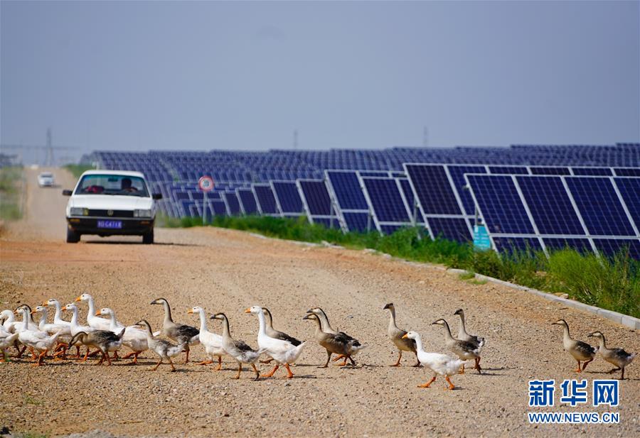 這是內蒙古鄂爾多斯市杭錦旗庫布其沙漠生態(tài)太陽能光伏光熱治沙發(fā)電綜合示范地(8月1日攝)。“板上發(fā)電、板下種草、板間養(yǎng)殖”,目前該太陽能發(fā)電項目治沙面積達到了13.3平方公里,每年發(fā)電5億千瓦時,實現(xiàn)銷售收入4.5億元。其社會效益、生態(tài)效益、民生效益、經濟效益十分顯著。 巍巍陰山南麓,鄂爾多斯高原之北,橫臥著一條長約400公里、寬5-65公里的黃色“長龍”。它似弓弦,將滔滔黃河拉出一個大大的“幾”字彎。 這是中國第七大、也是距北京最近的沙漠——庫布其沙漠,曾經寸草不生,風沙肆虐,被稱為“死亡之?!薄?/p> 幾十年來,庫布其人一代接著一代干,書寫了一部荒漠化治理的英雄史詩。 新華社記者 邢廣利 攝