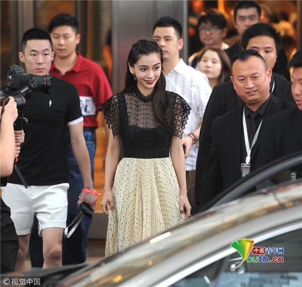 Angelababy穿黑色蕾絲薄紗裙小秀性感