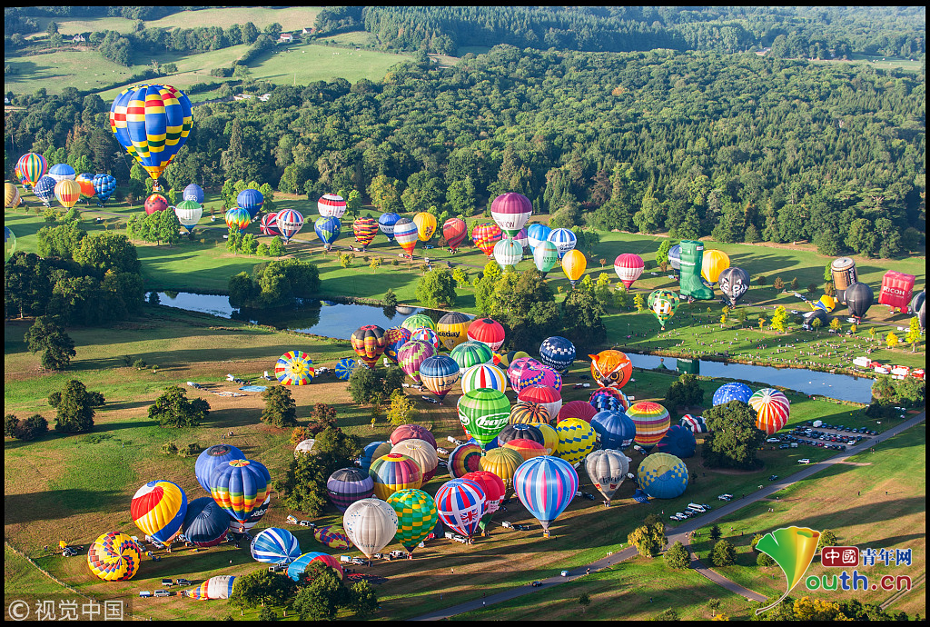 英國170多只熱氣球齊飛創(chuàng)紀(jì)錄 如田園夢(mèng)幻世界