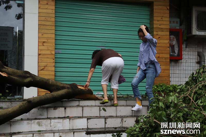 2018年9月17日10點(diǎn)03分,商報(bào)東二路,兩位市民走過(guò),一邊是倒塌的樹(shù)木。(攝影:楊浩翰)