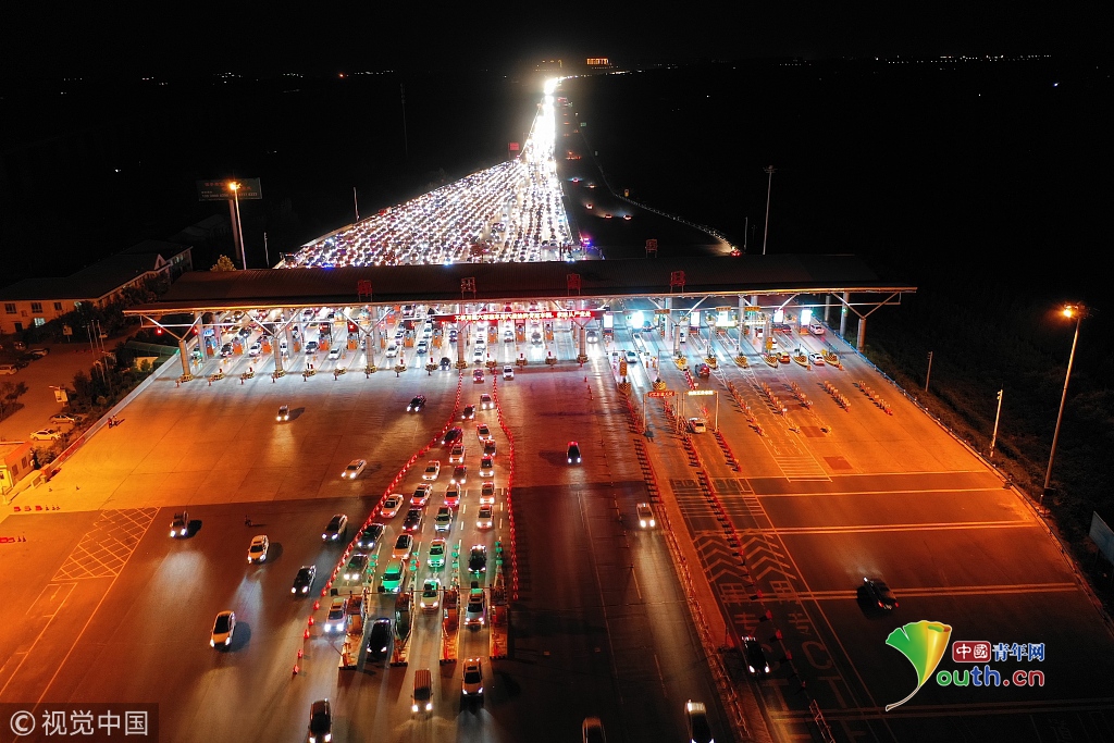 2018年9月24日,鄭州,在河南鄭州南收費(fèi)站,排隊(duì)出高速的汽車仍然排著長長的隊(duì)伍。當(dāng)天是中秋節(jié)小長假的最后一天,全國各地迎來返程客流高峰。