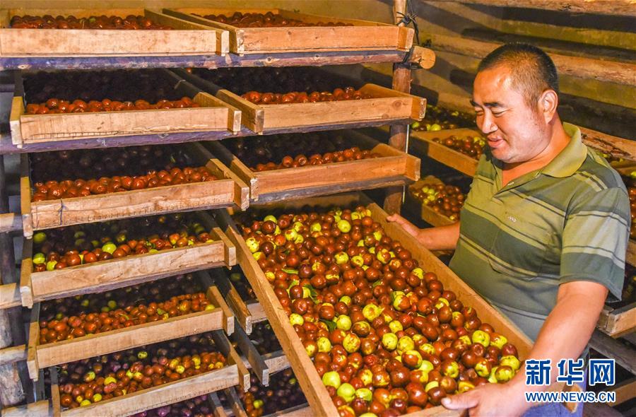 9月22日,河北省棗強(qiáng)縣棗強(qiáng)鎮(zhèn)孟家莊村的棗農(nóng)在晾曬紅棗。 近日,河北省棗強(qiáng)縣的2000多畝棗園迎來(lái)收獲季,棗農(nóng)們搶抓農(nóng)時(shí),采摘、篩選、晾曬紅棗,樂(lè)享秋收的快樂(lè)。 新華社記者李曉果攝