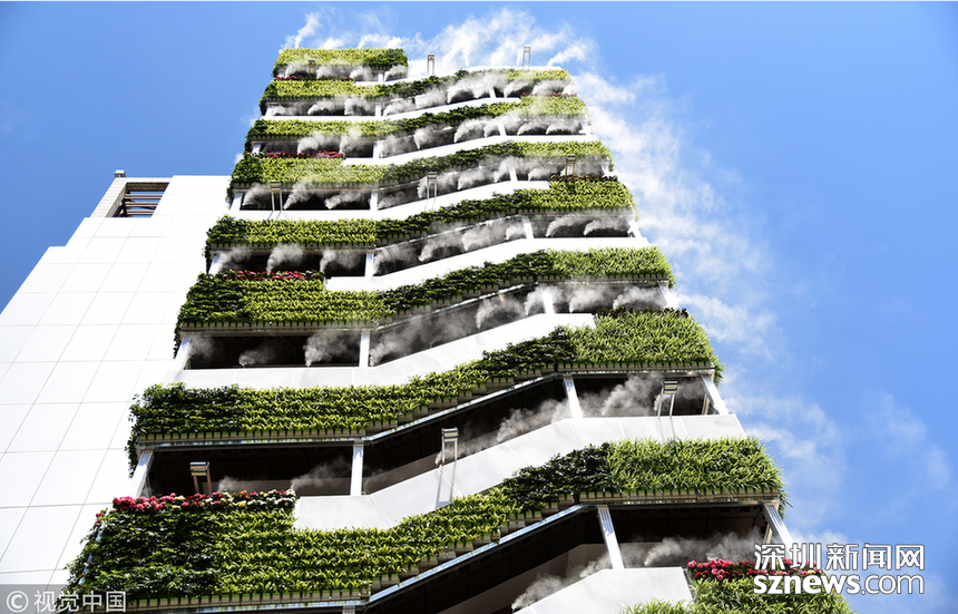2018年6月11日,西安市眾創(chuàng)示范街區(qū)的一處安裝了智能霧森系統(tǒng)的西北最大戶外垂直綠化。