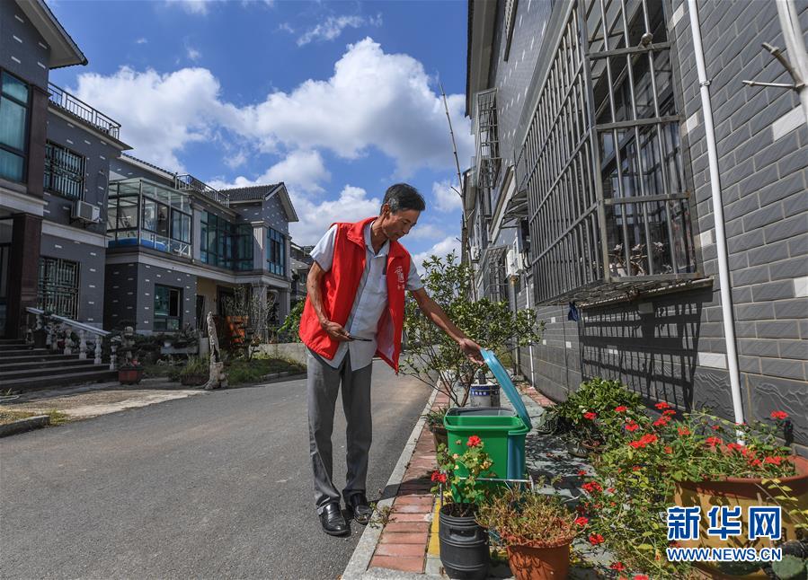 9月27日,小浦鎮(zhèn)合溪村垃圾分類督察員黃秋華在進(jìn)行垃圾分類巡查,并用APP進(jìn)行登記。從9月初開始,浙江省長興縣小浦鎮(zhèn)推廣使用手機(jī)垃圾分類智能管理平臺(tái)。通過這款A(yù)PP可以進(jìn)行村民垃圾分類情況打分、清運(yùn)員每日簽到、監(jiān)督員巡查等,并能即時(shí)生成農(nóng)戶垃圾分類“成績單”,所有農(nóng)戶均可通過APP查詢垃圾分類排行榜,既方便又環(huán)保。新華社記者 徐昱 攝