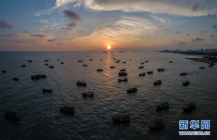 這是夕陽(yáng)西下時(shí),漁船從廣西北海市銀灘風(fēng)景區(qū)出海作業(yè)(9月26日無(wú)人機(jī)拍攝,拼接照片)。 新華社記者 李鑫 攝