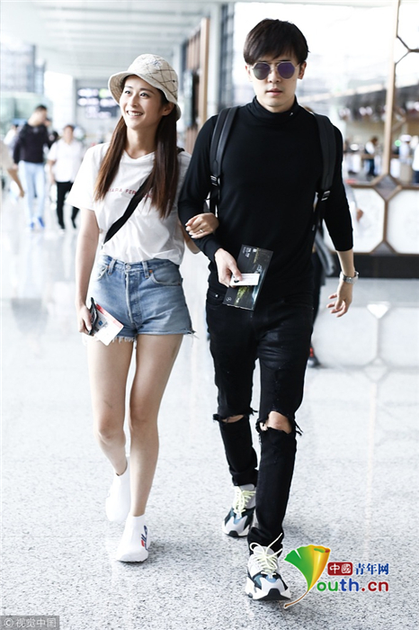 2018年9月26日,上海,穎兒、付辛博夫婦亮相機(jī)場(chǎng)。穎兒身穿白T恤和牛仔短褲露出纖細(xì)美腿十分養(yǎng)眼,一路挽著老公的手十分恩愛(ài)甜蜜,日前,穎兒還在節(jié)目上痛哭述說(shuō)自己與付辛博新婚相處的苦楚。