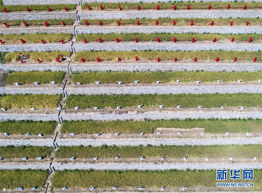 9月29日,太極拳愛好者在建德市大洋鎮(zhèn)高垣村的千畝梯田上進行表演(無人機拍攝)。當日,2000多名太極拳愛好者在浙江省建德市大洋鎮(zhèn)高垣村的千畝梯田上參加太極拳表演,吸引很多當?shù)厝撕陀慰颓皝碛^賞,助力當?shù)亟鹎飼r節(jié)鄉(xiāng)村旅游。近兩年來,大洋鎮(zhèn)充分利用土地整治后形成的千畝梯田打造農業(yè)觀光綜合體,發(fā)展綜合型農業(yè)觀光旅游,為鄉(xiāng)村振興注入新活力。新華社記者徐昱攝