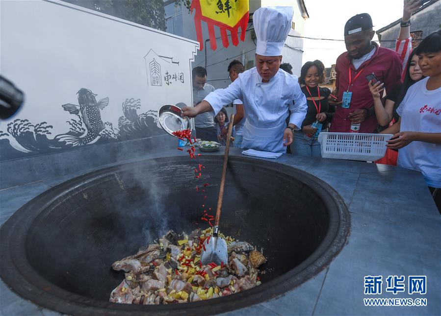 9月30日,廚師在中外游客的圍觀下烹飪“江鮮第一鍋”。當(dāng)日,浙江省杭州市富陽區(qū)場(chǎng)口鎮(zhèn)東梓關(guān)村開啟“江鮮第一鍋”,幾位大廚聯(lián)手在直徑1.5米的大鍋內(nèi)烹制美味江鮮,這也是當(dāng)?shù)亍敖r大會(huì)”的重頭戲。東梓關(guān)村有著1000多年歷史,古就是富春江南岸重要的商貿(mào)集散地,素有富春江“東流第一關(guān)”之稱。隨著近年來美麗鄉(xiāng)村建設(shè)的推進(jìn),東梓關(guān)村著力打造粉墻黛瓦的江南民居,同時(shí)依托富春江豐富的江鮮魚類資源,在秋季舉辦特色“江鮮大會(huì)”,通過江鮮捕撈體驗(yàn)、江鮮第一鍋、百鮮宴、農(nóng)家菜大賽等活動(dòng),吸引各地游客前來感受富春江漁民豐收的喜悅和千年古村的獨(dú)特魅力,推動(dòng)鄉(xiāng)村特色旅游發(fā)展。新華社記者徐昱攝