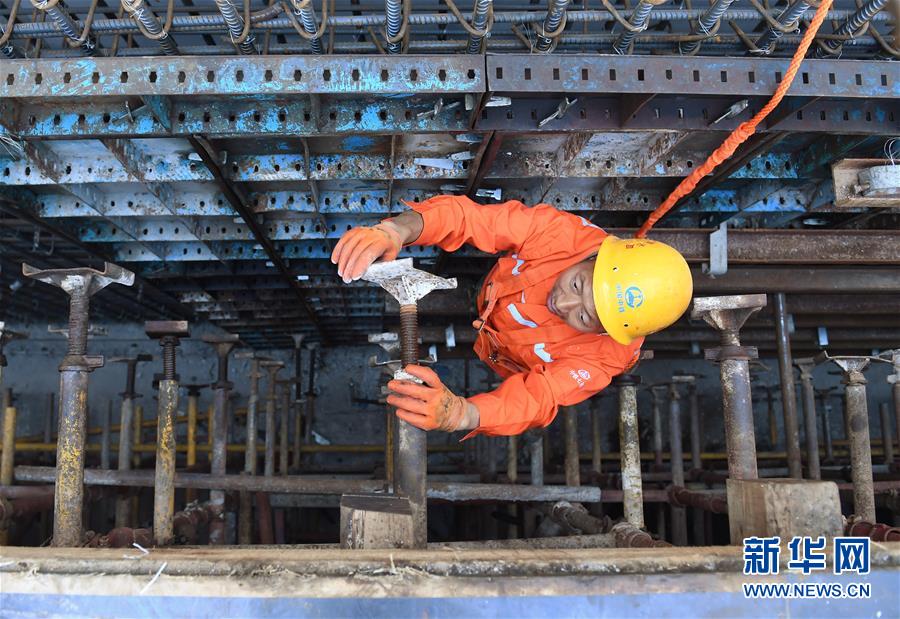 10月1日,中鐵七局西安地鐵五號(hào)線TJSG-12標(biāo)項(xiàng)目部的工作人員在現(xiàn)場(chǎng)施工。當(dāng)日是國慶節(jié),許多勞動(dòng)者堅(jiān)守在工作一線,在崗位上度過節(jié)日。新華社記者劉瀟攝