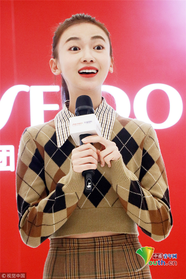 2018年10月8日,上海,吳謹(jǐn)言出席某活動。她穿學(xué)院風(fēng)套裝,高梳馬尾嫩似小學(xué)妹,熱聊粉絲甜笑比心少女范十足 。