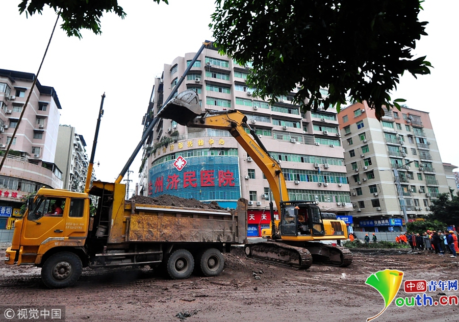 中國(guó)青年網(wǎng)北京10月9日電 2018年10月8日消息,四川達(dá)州。10月8日從四川省達(dá)州市達(dá)川區(qū)委宣傳部獲悉,7日14時(shí)30分左右,達(dá)川區(qū)東環(huán)南路103號(hào)人行道路面發(fā)生塌陷險(xiǎn)情,經(jīng)調(diào)取視頻監(jiān)控和走訪周邊群眾,救援人員初步判斷疑似有4人掉入坑中。圖片作者:視覺(jué)中國(guó)