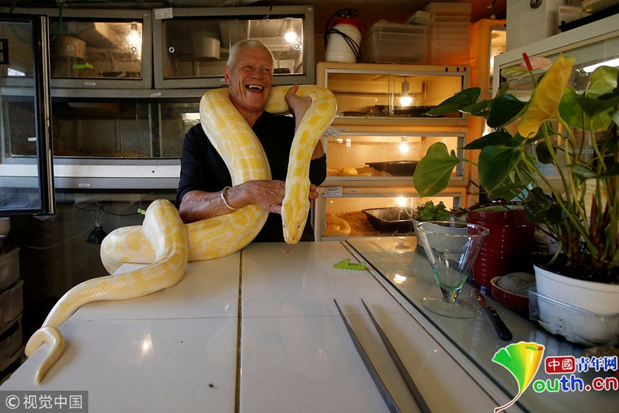 中國青年網(wǎng)北京9月21日電 當(dāng)?shù)貢r間2018年9月19日,法國67歲的法國男子Philippe Gillet與400多只爬行動物生活在一起,有鱷魚、蜥蜴、眼鏡蛇等等。
