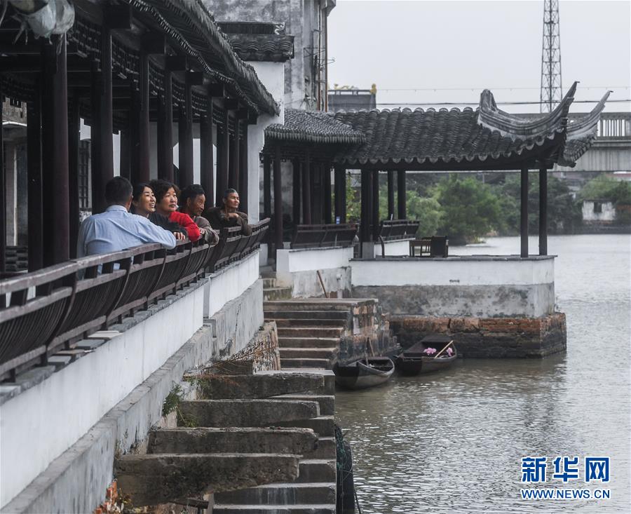 10月10日,村民在泉家潭村沿河長廊中休息。 新華社記者 徐昱 攝