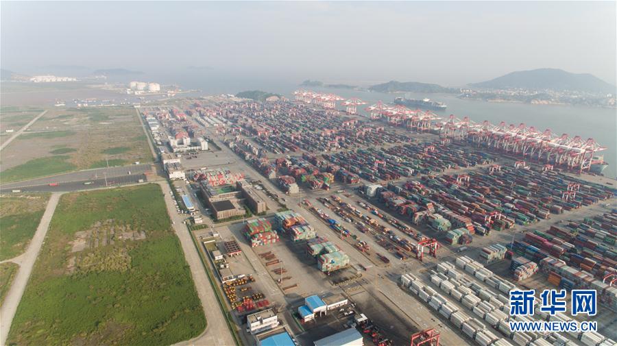 這是上海洋山深水港四期自動化碼頭(7月25日無人機拍攝)。 位于杭州灣口外的上海洋山深水港區(qū),由大、小洋山等數(shù)十個島嶼組成,是中國首個在海島建設(shè)的港口。洋山港西北距上海市南匯蘆潮港約32公里,南至寧波北侖港約90公里,距國際航線僅45海里,是距上海最近的深水良港。 得益于洋山深水港的規(guī)劃建設(shè)和多年發(fā)展,目前上海港與全球214個國家和地區(qū)的500多個港口建立了集裝箱貨物貿(mào)易往來,國際班輪航線遍及全球各主要航區(qū)。2017年,上海港集裝箱吞吐量首次突破4000萬標準箱,完成4023.3萬標準箱,同比增長8.3%,均創(chuàng)歷史最高水平。 新華社記者 丁汀攝