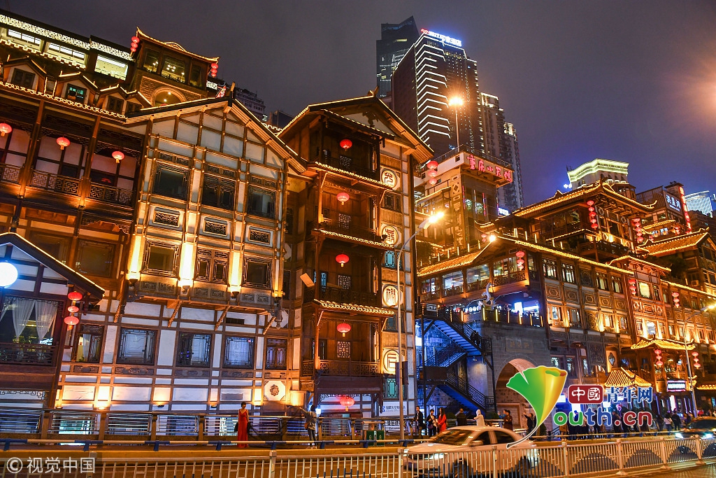 重慶網(wǎng)紅景點游人如織 洪崖洞夜景輝煌