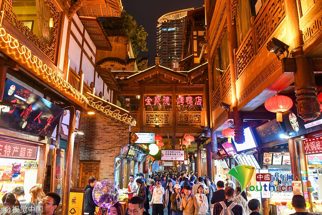 重慶網(wǎng)紅景點游人如織 洪崖洞夜景輝煌