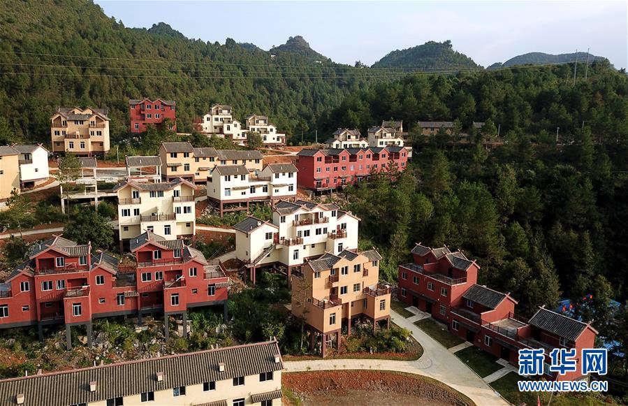 10月11日無人機(jī)拍攝的廣西南丹縣里湖瑤族鄉(xiāng)移民集中安置點(diǎn)。