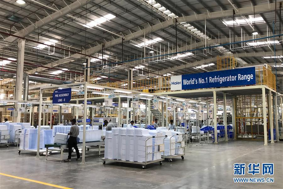 2017年11月16日,工人在位于印度馬哈拉施特拉邦浦那市的中國(guó)海爾集團(tuán)工業(yè)園廠房?jī)?nèi)工作。