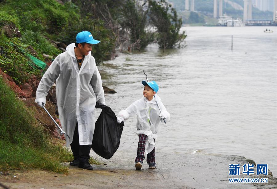 10月13日,參加“益起愛河”水資源保護公益活動的一對父子在重慶嘉陵江邊清理垃圾。 當日,“益起愛河”水資源保護公益活動在重慶正式啟動。活動旨在通過河道清理、城市水源工程探訪、濕地保護區(qū)調(diào)研等行動,號召更多社會人士投身于水資源生態(tài)保護工作。 新華社記者王全超攝