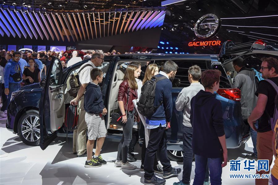 10月14日,在法國巴黎國際車展上,人們參觀廣汽傳祺品牌展臺。 當(dāng)日,2018年巴黎國際車展閉幕。據(jù)主辦方統(tǒng)計,超過100萬人次參觀了本屆車展。 新華社記者 陳益宸 攝