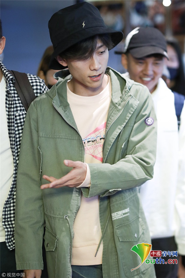 2018年10月14日,上海,張一山抵達(dá)上海機(jī)場(chǎng)。張一山戴漁夫帽眼袋嚴(yán)重瞬間老十歲, 用手擋臉?biāo)撇辉干乡R。
