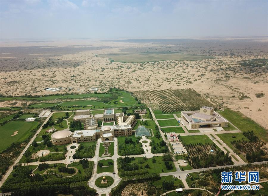 內(nèi)蒙古鄂爾多斯市恩格貝生態(tài)旅游區(qū)(6月8日無人機拍攝)。 新華社記者彭源攝