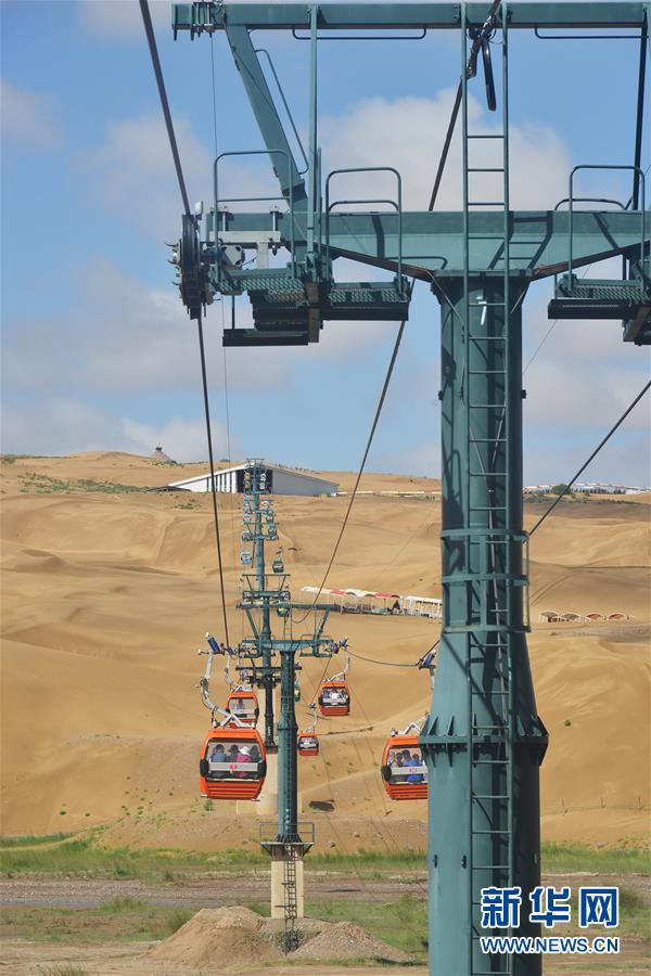 游客在庫布其沙漠中的內(nèi)蒙古鄂爾多斯市達(dá)拉特旗響沙灣景區(qū)的沙地上蕩秋千(7月31日攝)。依托庫布其沙漠特有的自然風(fēng)光和多年生態(tài)建設(shè)的成果,當(dāng)?shù)亟ǔ身懮碁?、七星湖、恩格貝等生態(tài)旅游景區(qū)。近十年來,鄂爾多斯市生態(tài)旅游景區(qū)累計接待游客近1000萬人次,實現(xiàn)收入24.6億元。