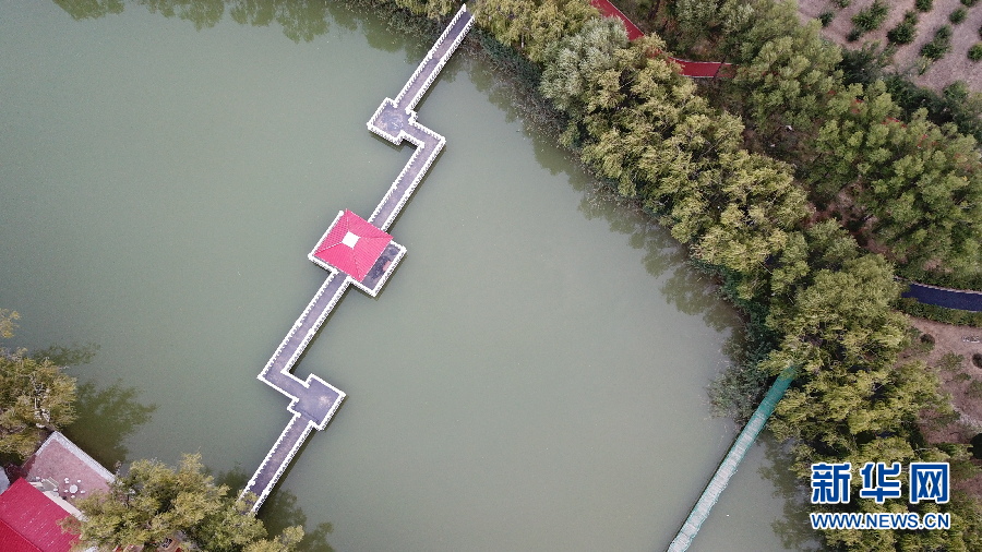 恩格貝生態(tài)示范區(qū)位于庫布齊沙漠中段,總面積200平方公里。這里曾經(jīng)風(fēng)沙肆虐,恩格貝生態(tài)示范區(qū)建設(shè)者經(jīng)過長期艱苦奮斗,用雙手和鐵鍬“種”出一片人造沙漠綠洲,在沙漠里打造了一顆璀璨的生態(tài)明珠,如今這里是國家生態(tài)旅游示范區(qū)和國家4A級景區(qū)。月亮湖位于恩格貝生態(tài)示范區(qū)核心區(qū)域,周圍被綠色植被環(huán)繞,在無人機航拍視角下,猶如鑲嵌在沙漠綠洲里的一塊碧玉,呈現(xiàn)出大自然的和諧之美。(新華網(wǎng) 王宇 攝)