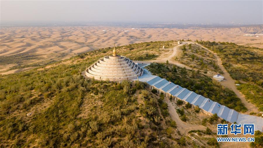 庫布其沙漠中銀肯塔拉敖包周邊種植的防風(fēng)固沙林(7月31日無人機拍攝)。 新華社記者彭源攝
