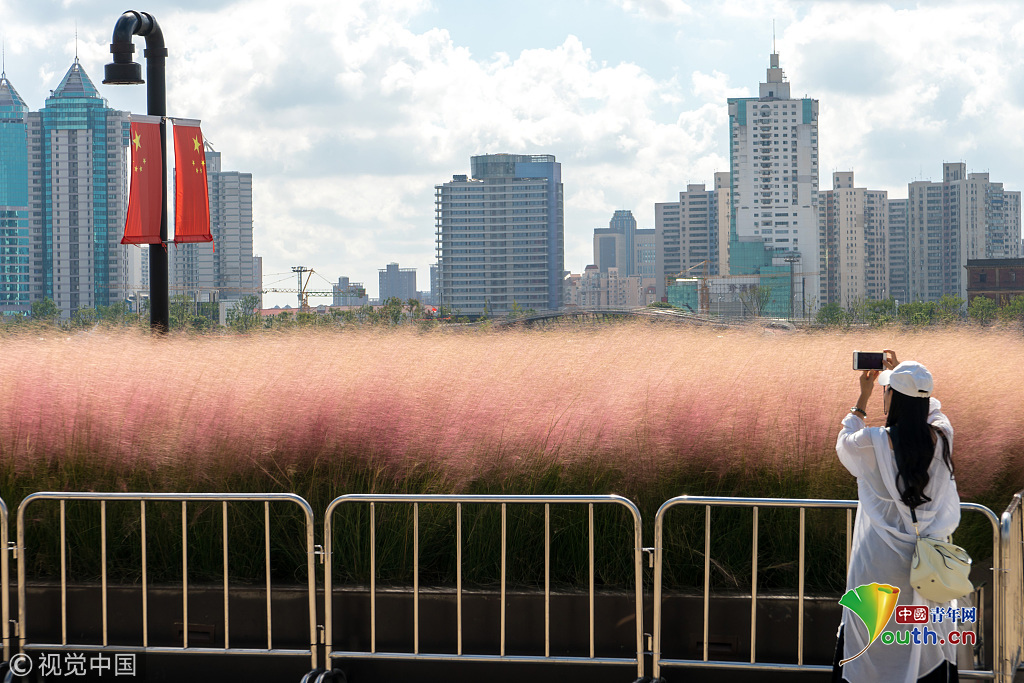 上海楊浦濱江粉黛亂子草成片盛開 美不勝收