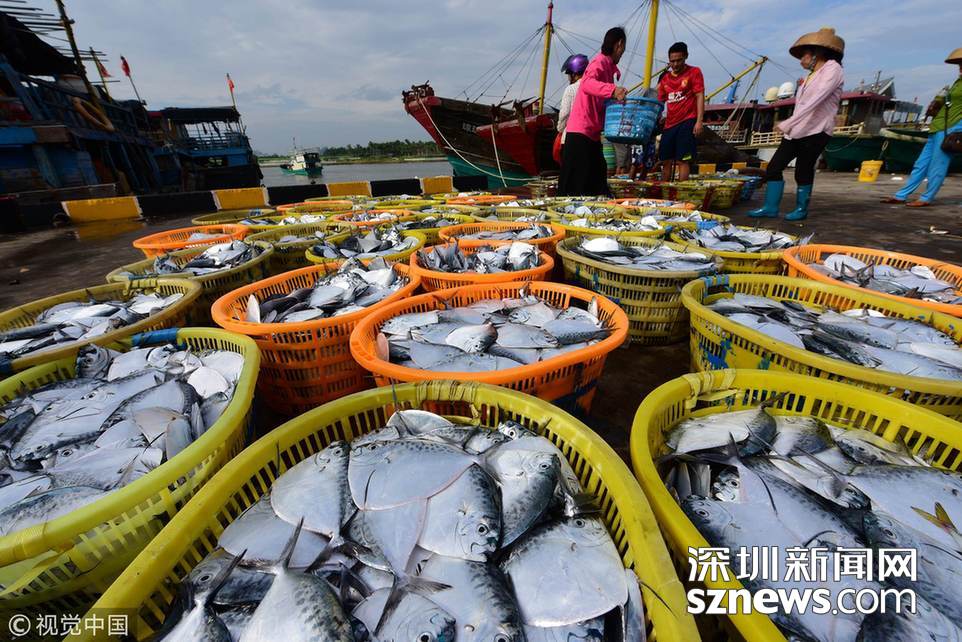 今秋海南開漁以來,南海不時出現(xiàn)風雨天氣,給漁業(yè)生產帶來影響。近日,隨著天氣的好轉,海南漁民加緊出海捕撈作業(yè)。當日,一艘艘漁船陸續(xù)返港卸下漁貨,源源供應各地市場。